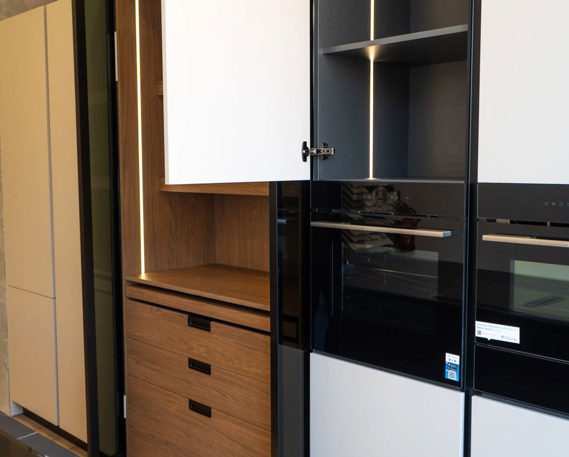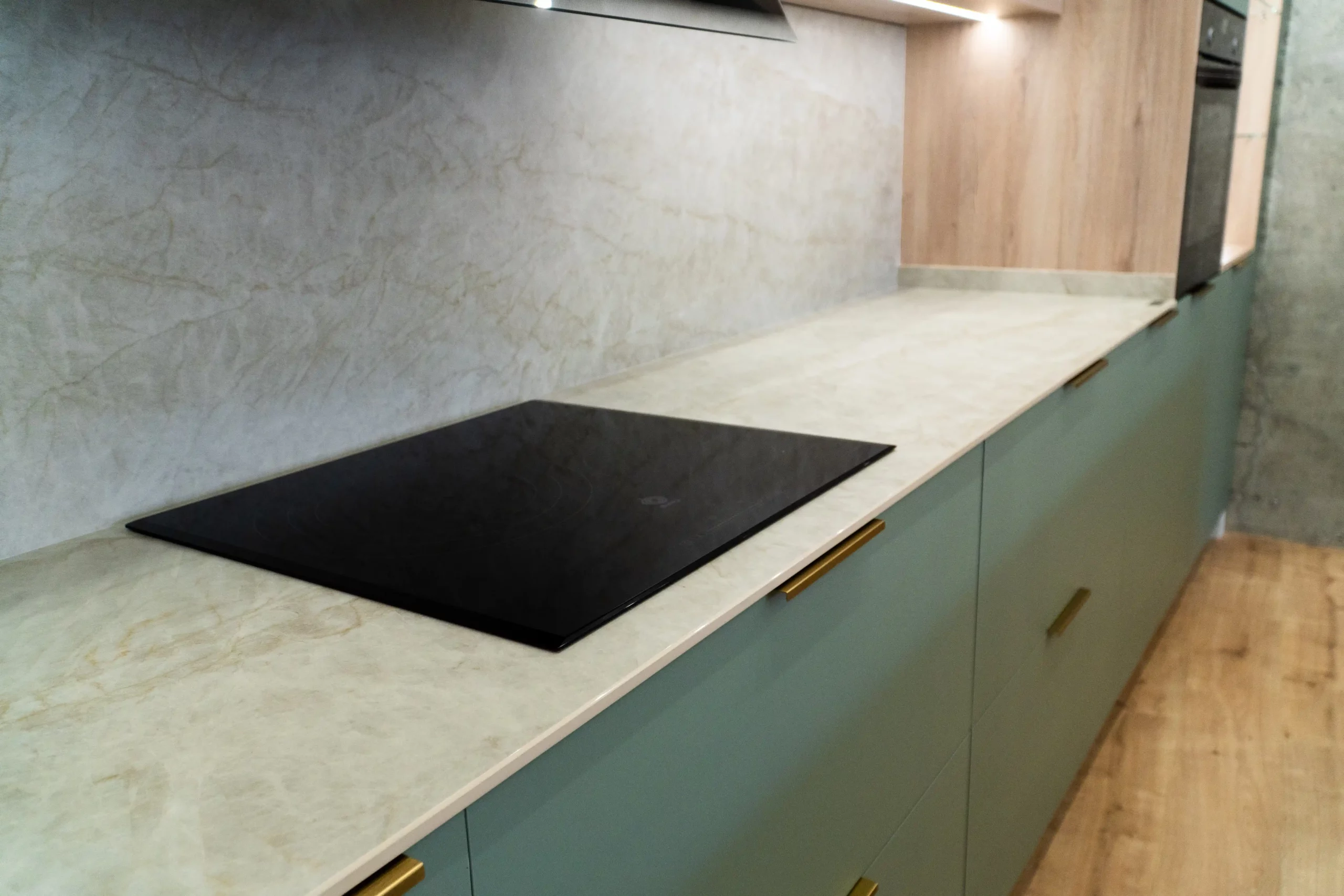 Utilizamos solo materiales de primera calidad para garantizar cocinas duraderas, resistentes y con un acabado impecable. Disponemos de una amplia variedad de opciones en encimeras (granito, cuarzo, porcelánico, madera, etc.), frentes de cocina, tiradores y sistemas de almacenamiento inteligente para que tu cocina no solo sea estética, sino también práctica y cómoda.